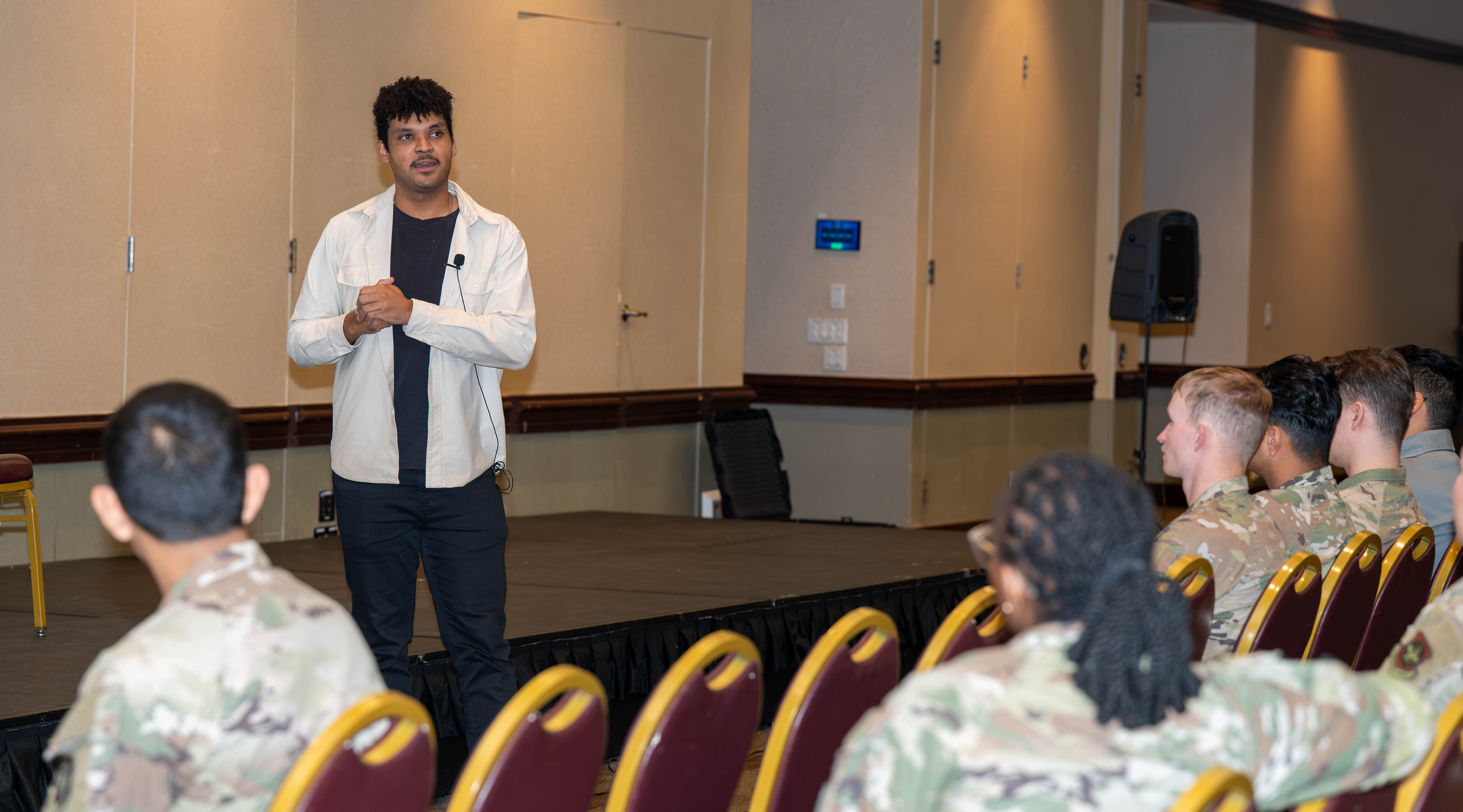 IPRO presents a sexual assault prevention event at Travis AFB U.S. Air Force Logo Nov. 20, 2025 251118-F-PA306-1090 A U.S. Airman assigned to the 60th Air Mobility Wing participates in a simulated sexual assault prevention exercise during a sexual assault awareness event at Travis Air Force Base, California, Nov. 18, 2025. The event was a scripted realistic scenario that provided participants an interactive environment to learn and engage in creating safe and effective social situations. (U.S. Air Force photo by Airman 1st Class Ashley Rowell) Details Download 251118-F-PA306-1054 U.S. Airmen assigned to the 60th Air Mobility Wing listen to performers during a sexual assault prevention and awareness event at Travis Air Force Base, California, Nov. 18, 2025. The event offered participants an opportunity to witness a realistic scripted scenario and think through intervention techniques which could be tested out in real time. (U.S. Air Force photo by Airman 1st Class Ashley Rowell) Details Download 251118-F-PA306-1027 Performers act out a scene depicting assault during a sexual assault prevention and awareness event at Travis Air Force Base, California, Nov. 18, 2025. The event offered participants an opportunity to witness a realistic scripted scenario and think through intervention techniques which could be tested out in real time. (U.S. Air Force photo by Airman 1st Class Ashley Rowell) Details Download 251118-F-PA306-1023 A performer engages with the audience during a sexual assault prevention event at Travis Air Force Base, California, Nov. 18, 2025. The event offered participants an opportunity to witness a realistic scripted scenario and think through intervention techniques which could be tested out in real time. (U.S. Air Force photo by Airman 1st Class Ashley Rowell) Details Download 251118-F-LJ715-1061 U.S. Airmen assigned to the 60th Air Mobility Wing participate in a simulated sexual assault prevention exercise during a sexual assault and awareness event at Travis Air Force Base, California, Nov. 18, 2025. The event offered participants an opportunity to witness a realistic scripted scenario and think through intervention techniques which could be tested out in real time. (U.S. Air Force photo by Airman 1st Class Ashley Rowell) Details Download 251118-F-PA306-1095 U.S. Airmen assigned to the 60th Air Mobility Wing clap during a sexual assault awareness event at Travis Air Force Base, California, Nov. 18, 2025. The event was a scripted realistic scenario that provided participants an interactive environment to learn and engage in creating safe and effective social situations. (U.S. Air Force photo by Airman 1st Class Ashley Rowell) Details Download Performers act out a scene depicting assault during a sexual assault prevention and awareness event at Travis Air Force Base, California, Nov. 18, 2025.