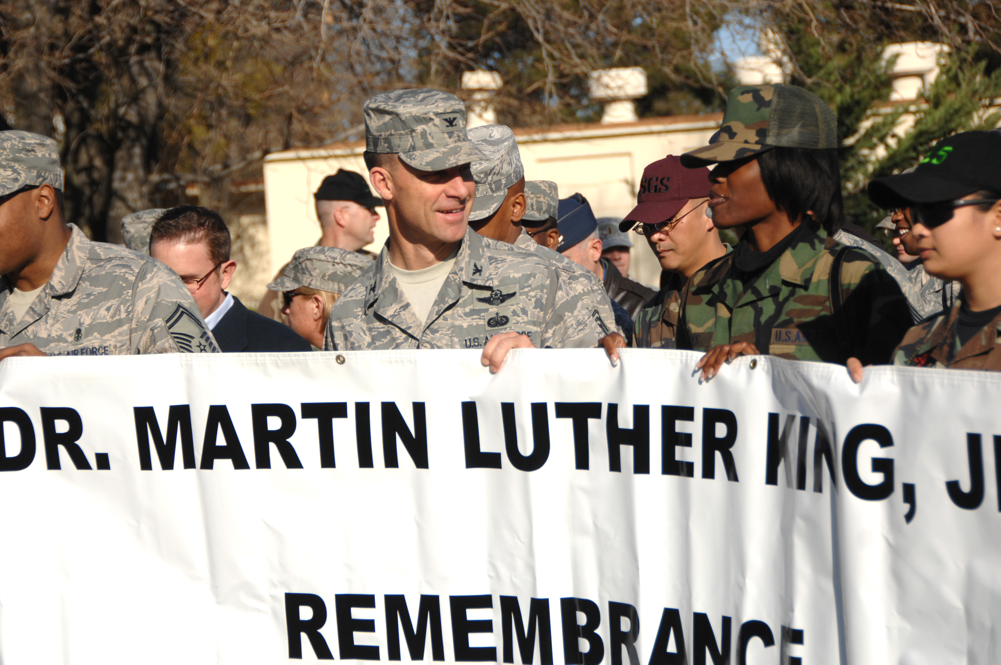 Colonel Mark Dillion, (center) 60th Air Mobility commander, leads Team Travis in the Martin Luther King Rememberance walk, Tuesday January 27th 2009. (U.S. Air Force Photo by Civ/Amanda Lopez)
